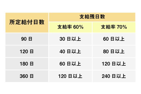 支給日数が2/3以上の人は70%、支給残日数1/3以上の人は60%となります。