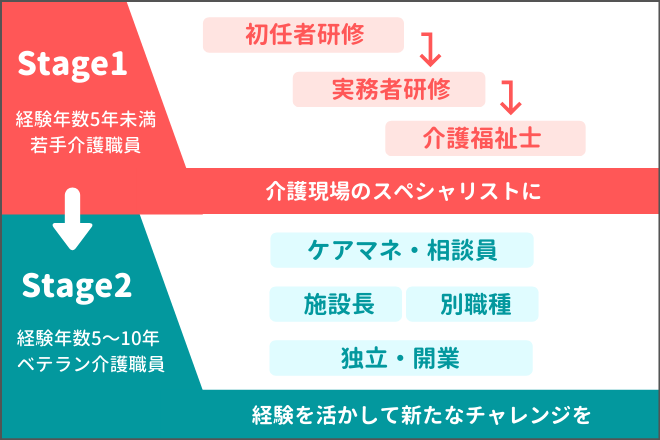 介護職員がキャリアアップしていくには大きく分けて2つのステージがあるといえます。