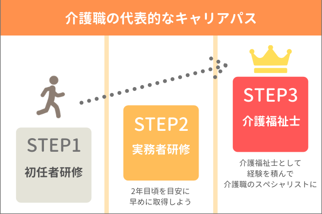 まずは若手・新人介護職員向けのキャリアアップの道筋からお伝えしていきます。