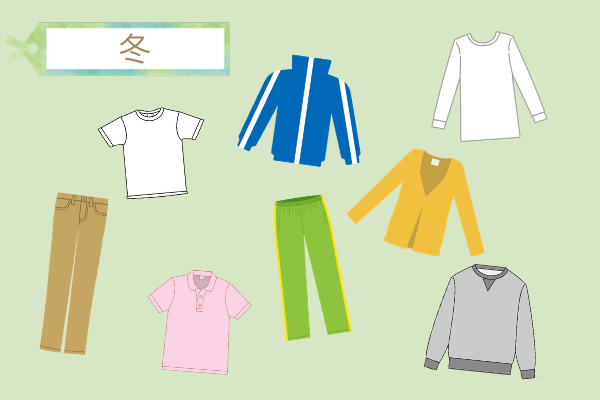 冬の服装は、厚手の生地や暖かいものを選びましょう。