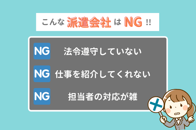 下記の項目に当てはまる派遣会社はおすすめできません。