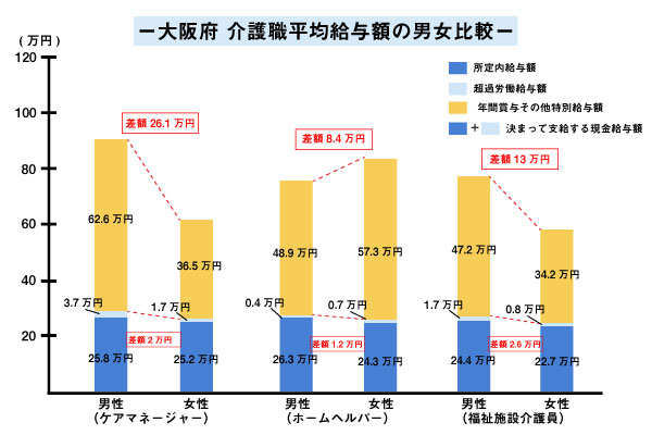 男女差はある?大阪府の介護職の給料事情