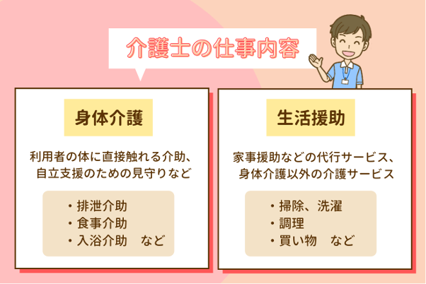 介護士の仕事内容は介護サービス利用者の身の回りのお世話や介助をすることです。