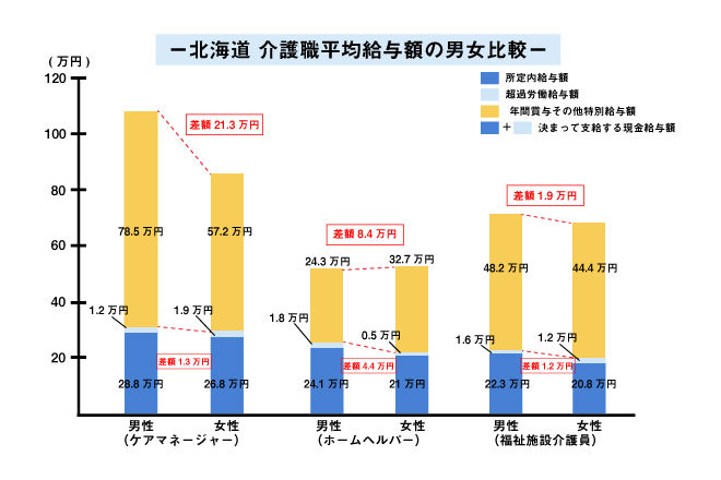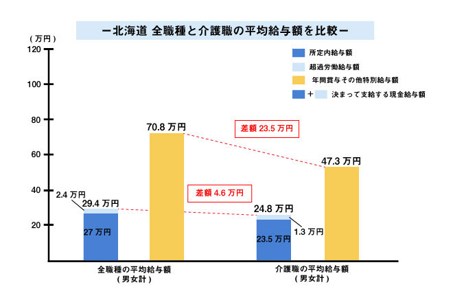 北海道の介護職は北海道の全産業の平均よりも給与水準が低いという調査結果が出ています。