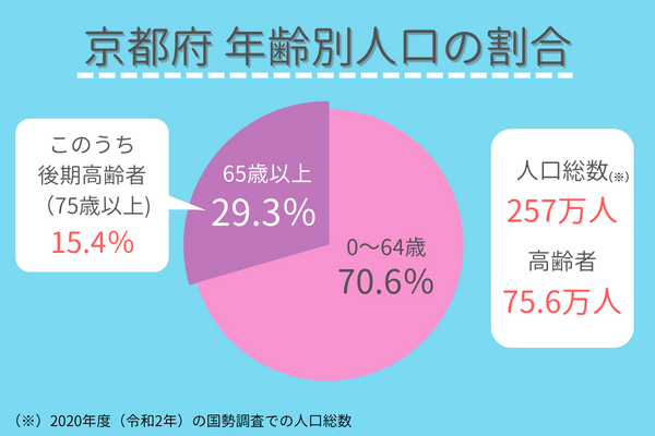 ・京都府の人口257万人のうち、65歳以上の人口は75.6万人(29.3%)(2020年度の国勢調査において)