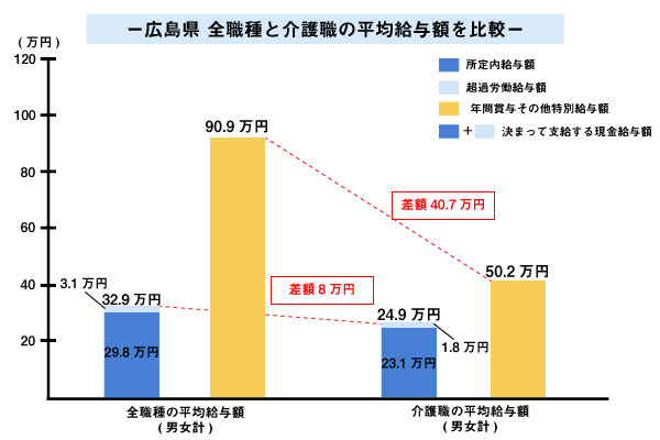 広島県:介護職員給与と全職種の給与比較