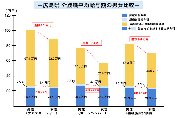 広島県:介護職の給料を男女別で比較