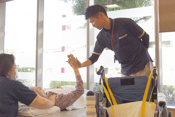 日ごろ利用者さんや多業種のスタッフと関わる中で見つけた仕事の喜びややりがい、今の職場だからこそ実現できていることなどを、吉崎施設長とご一緒にお話をお伺いしました。