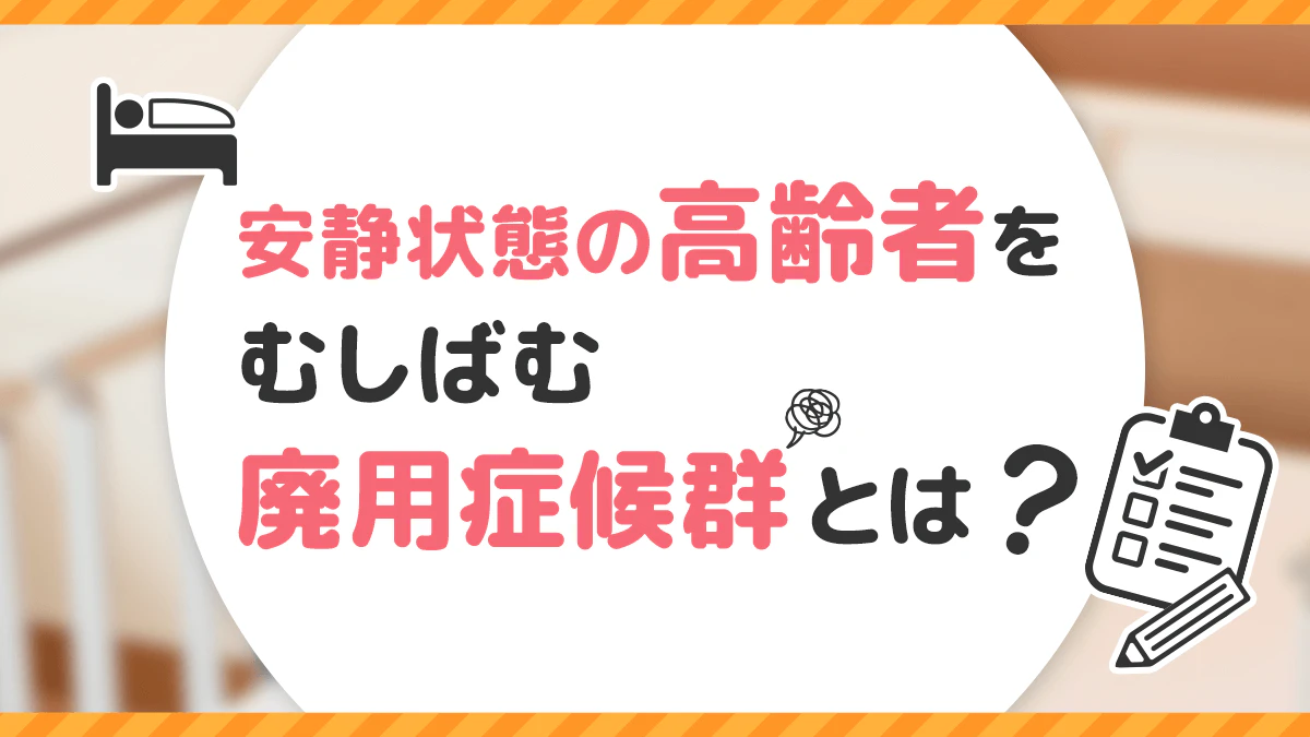 廃用症候群とは、入院や寝たきりなどの安静状態が長く続くことによって起こる、さまざまな心身の機能の低下です。数週間もしくは、数日でも起こる場合があると言われています。