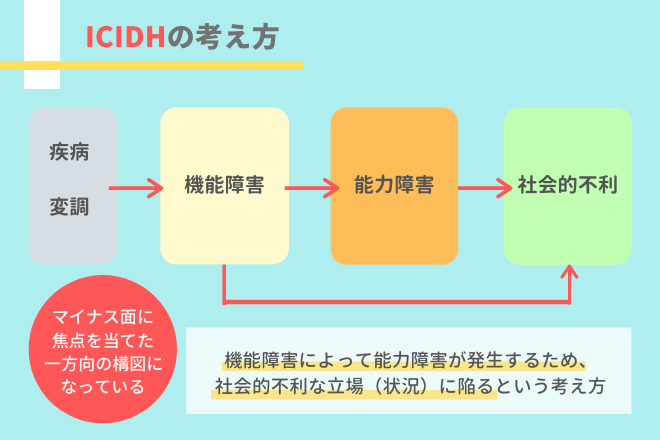 ICIDHは病気や疾患だけでなく生活や人生も見ることを提唱し「機能・形態障害があっても能力障害を解決することができるし、仮に能力障害が残っても社会的不利を解決することができる」という柔軟な考え方ができるものでしたが、いくつか問題点もありました。