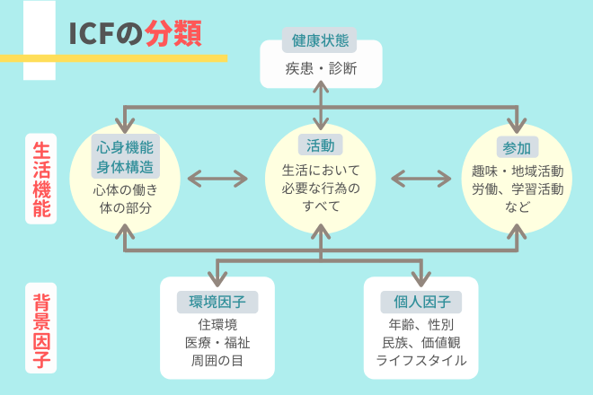 という考えに基づいて、このICF(国際生活機能分類)が提唱されました。