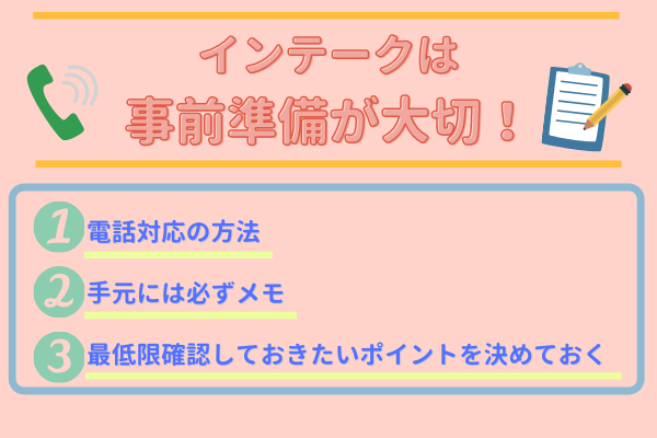 そこで、インテークを成功させるために必要な事前準備や基本的な流れ、手順、気を付けておきたいポイントについてご紹介したいと思います。