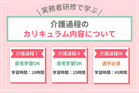 そこで実務者研修のカリキュラムのうち、介護過程Ⅰ・Ⅱ・Ⅲそれぞれどのような内容を学習するのか見ていきましょう。