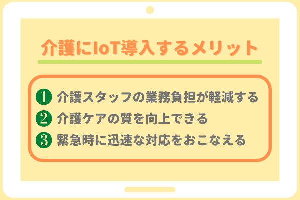 介護現場にIoT機器を導入するメリットは以下の3つ。