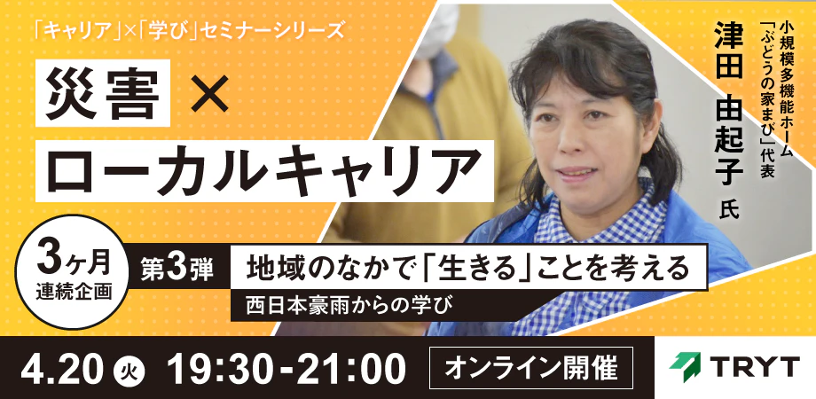 介護ワーカーを運営するトライトグループでは、令和3年4月20日に 「災害」×「ローカルキャリア」をテーマにオンラインセミナーを開催することになりました。