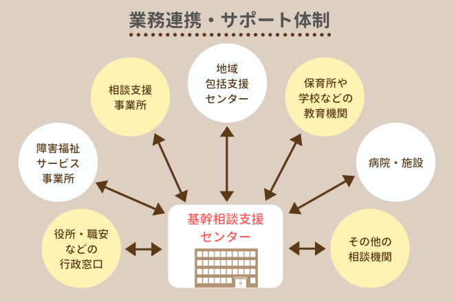 そのため、密に情報共有や調整をするための中心的役割を担うことは基幹相談支援センターの重要な務めとなります。
