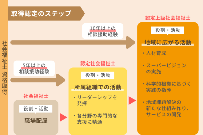 認定社会福祉士と認定上級社会福祉士の2段階の資格が設定されています。