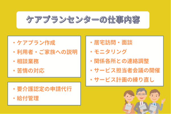 本コラムではこのケアプランセンターの役割や仕事内容について詳しく解説していきます。