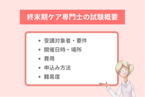 ここからは終末期ケア専門士資格を取得するための資格要件や試験の概要についてお伝えしていきます。