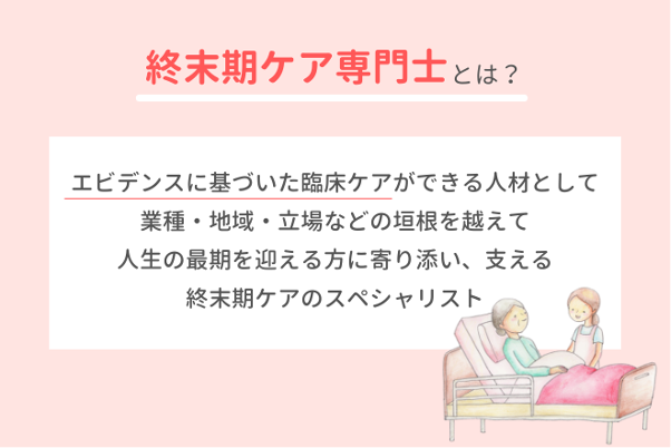 終末期ケア専門士とは、人生の最期を迎える人をサポートするための資格です。