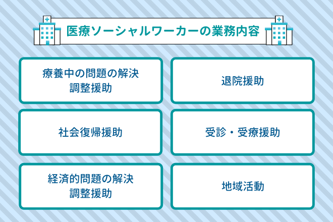 医療ソーシャルワーカーの役割は、患者が抱える問題を解決するためにさまざまな支援をすることです。