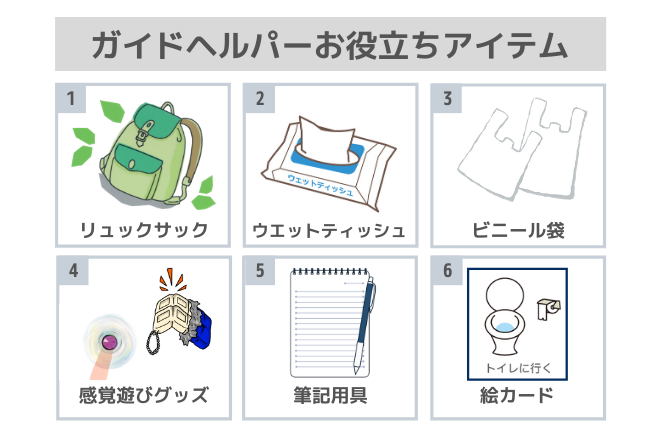 ガイドヘルパーの仕事に行く際に役立つアイテムを6つご紹介します。