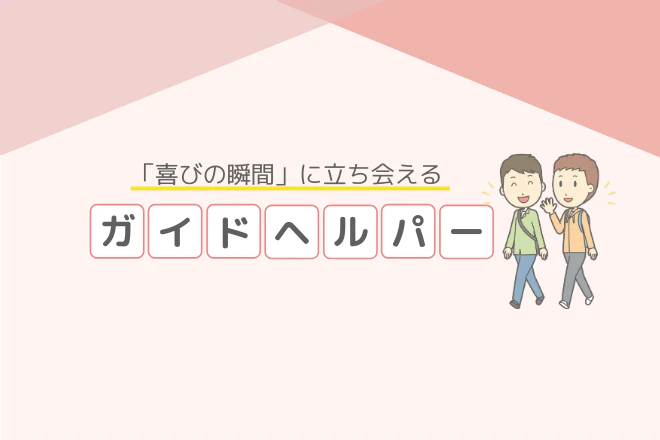 ガイドヘルパーとは、障がいのある方や障がいのあるお子さんの余暇をサポートするお仕事です。家庭内の仕事を行うヘルパーをホームヘルパーと呼ぶのに対し、ガイドヘルパーは外出時の援助を行います。