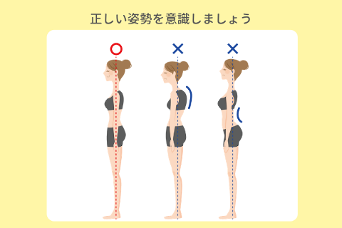 例えばスマホを見るときの姿勢、化粧をするときに鏡を覗き込む姿勢・・・無意識に猫背や頭が前に突き出たような姿勢になっているのではないでしょうか? 仕事中も、パソコン操作、移乗介助、入浴介助などなど、不良姿勢が続くことで肩こりは悪化します。 仕事に関してはどうしようもないこともありますが、極力正しい姿勢を意識しましょう。長時間同じ姿勢が続いた後には意識して肩甲骨を動かすことを習慣づけ、肩こりを予防していきましょう。