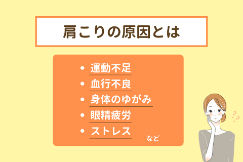 肩こりになる原因は色々あり、いくつかの要因が重なって起こる場合もあります。