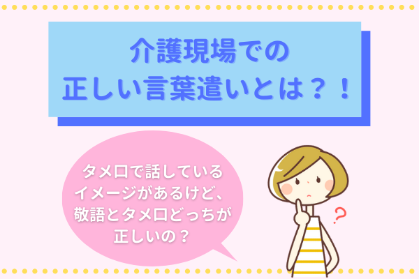 介護現場での正しい言葉遣いや敬語の基本について、また敬語とタメ口のメリットとデメリットなどをまとめてみました。