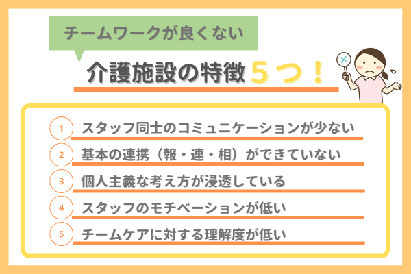 個人主義な考え方が浸透している介護施設もチームワークは良いとは言えません。